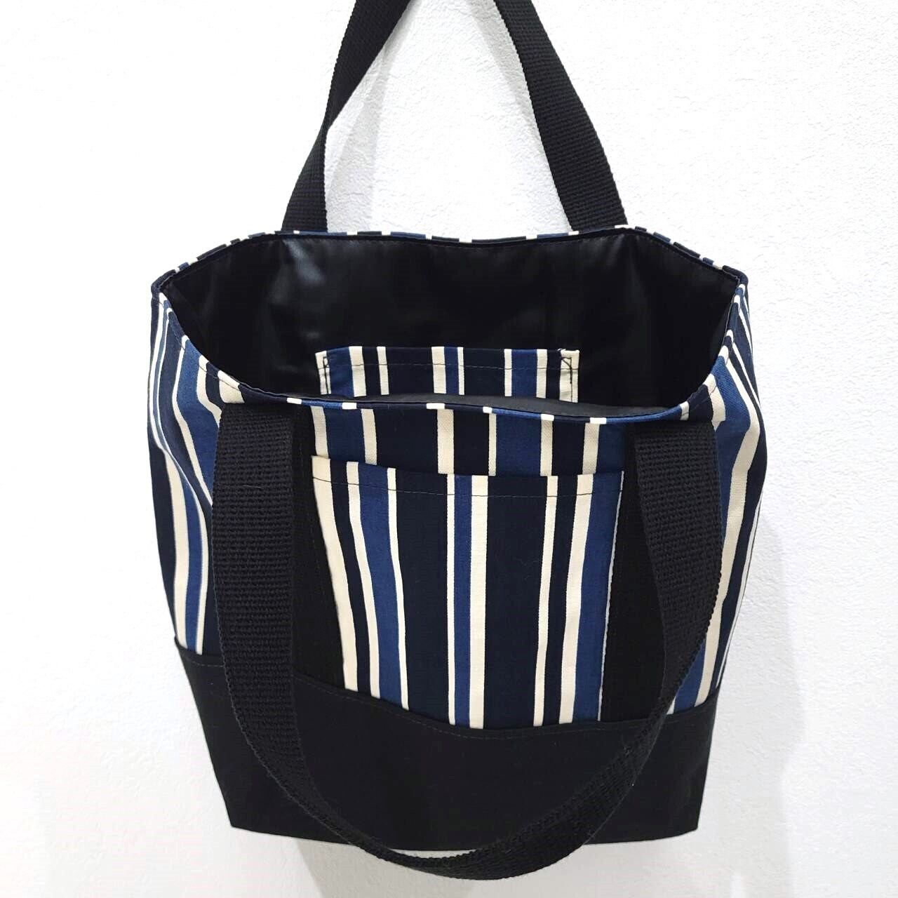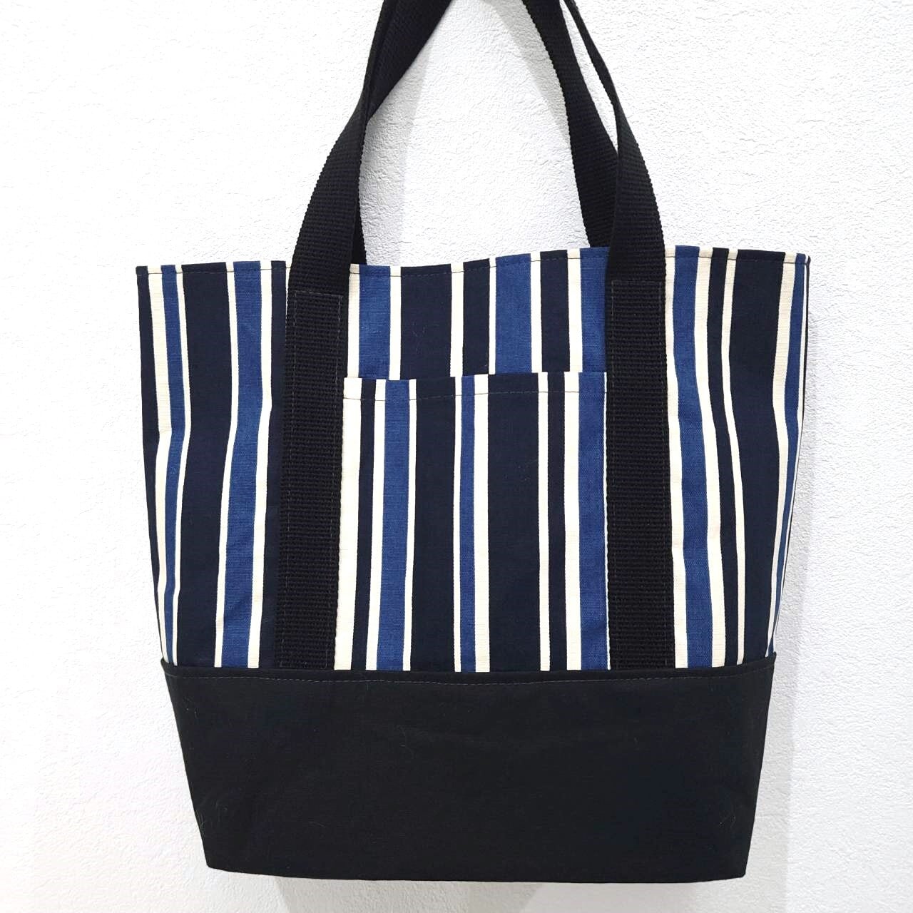 【10月発送予約分】ストライプ切り替えハンドバッグ 青