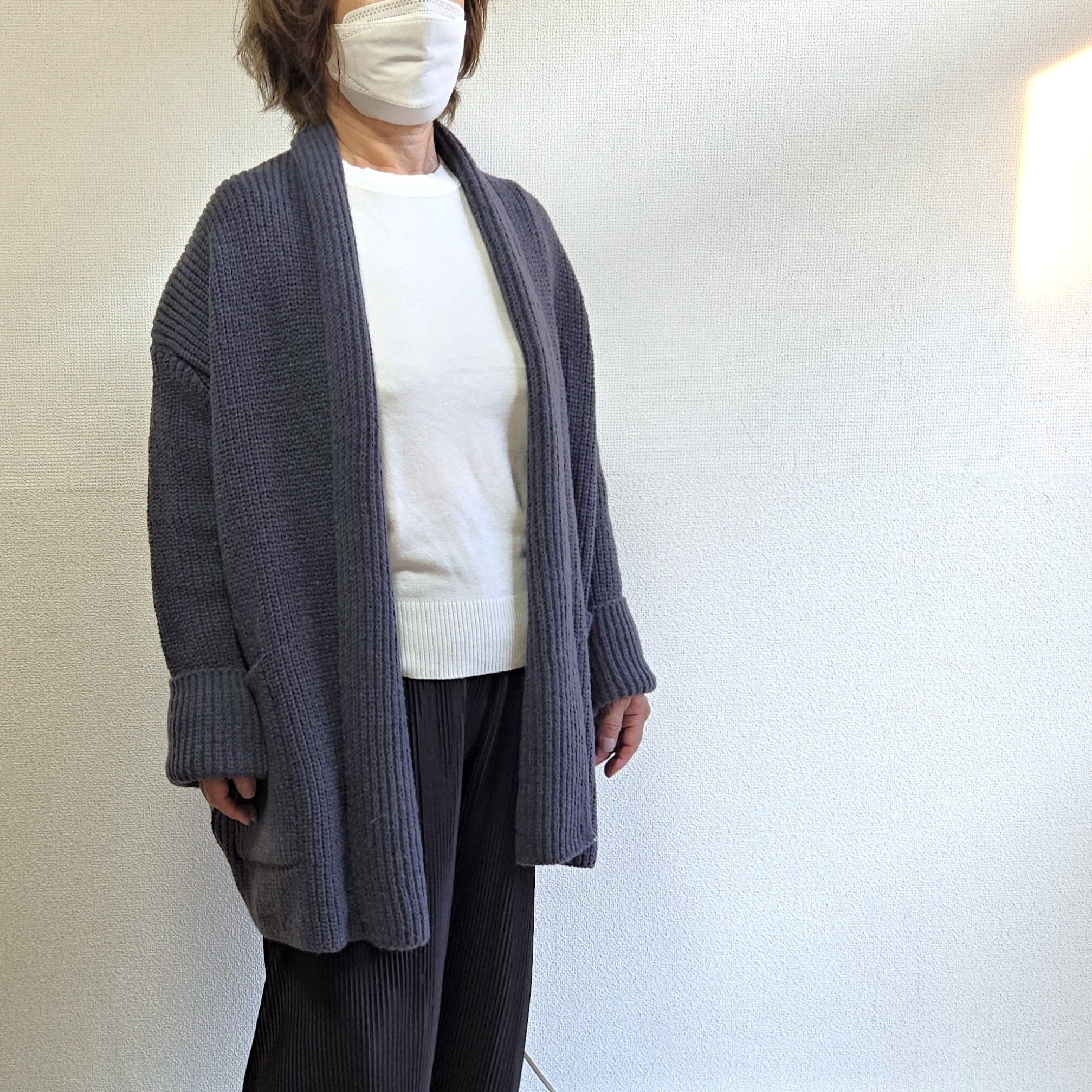 【グレー】厚手リブ編みニットカーディガン|ゆったり上品シルエット・大人ナチュラルコーデ【11月発送予約分】