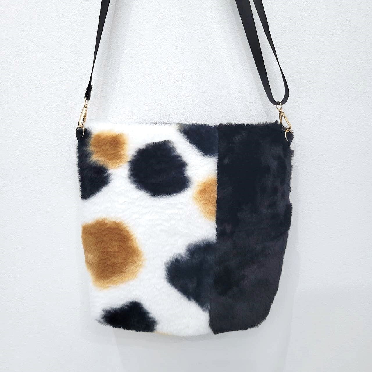 【1月発送予約分】三毛猫柄バイカラーフェイクファーショルダーバッグ