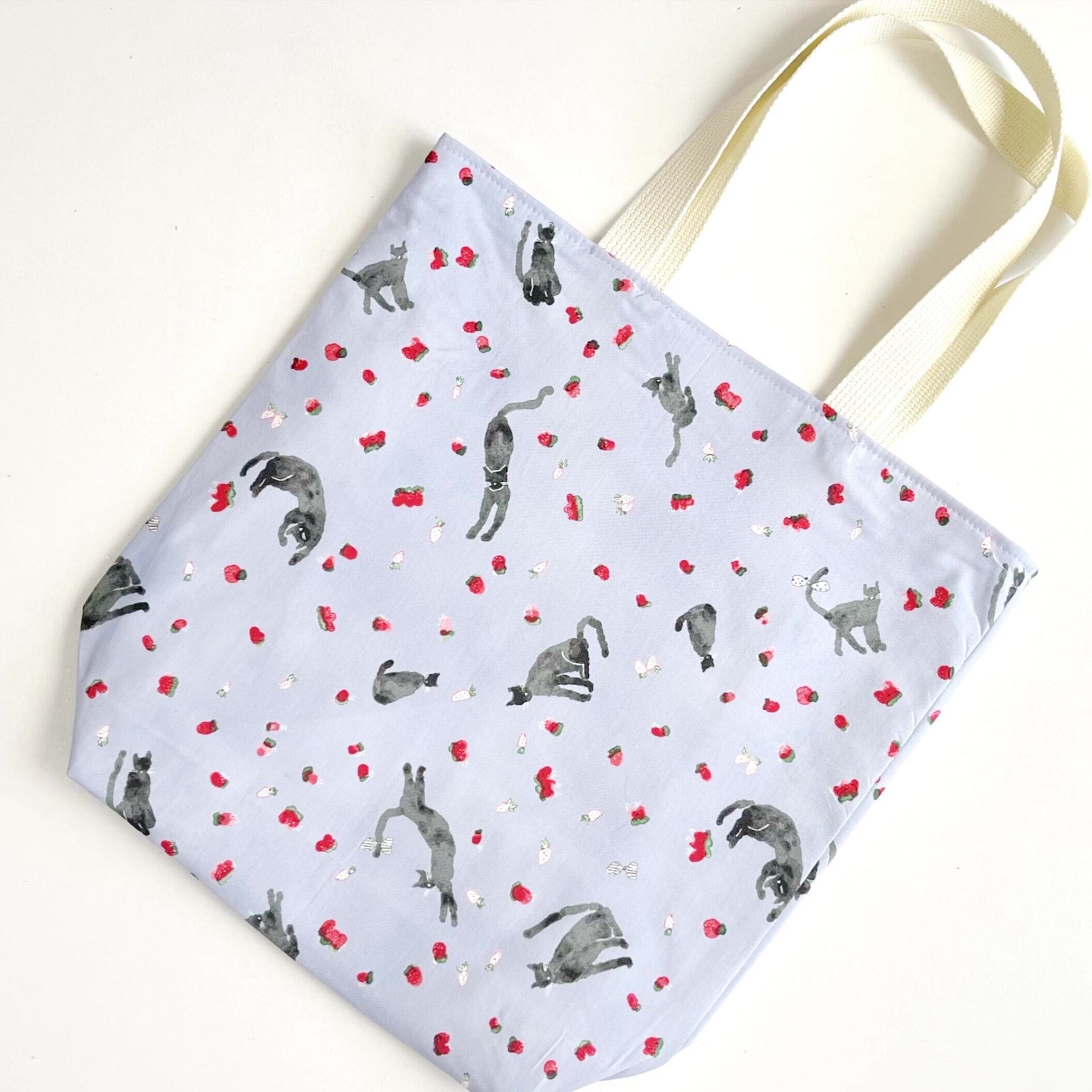 【7月予約分】ネコちゃん柄トートバッグ 薄青 限定3個