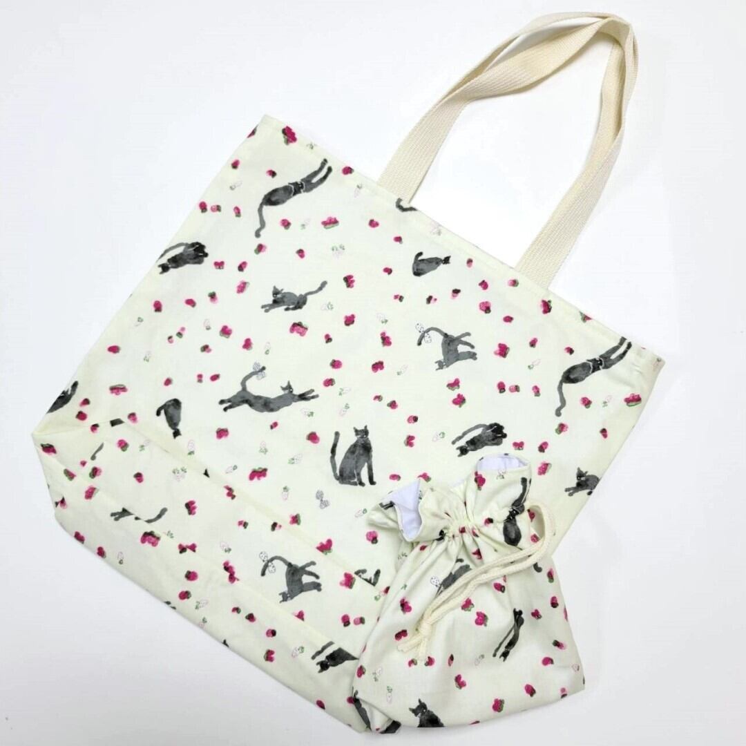【5月下旬発送予約分】ネコちゃん柄トートバッグ ミニ巾着付き 限定4個