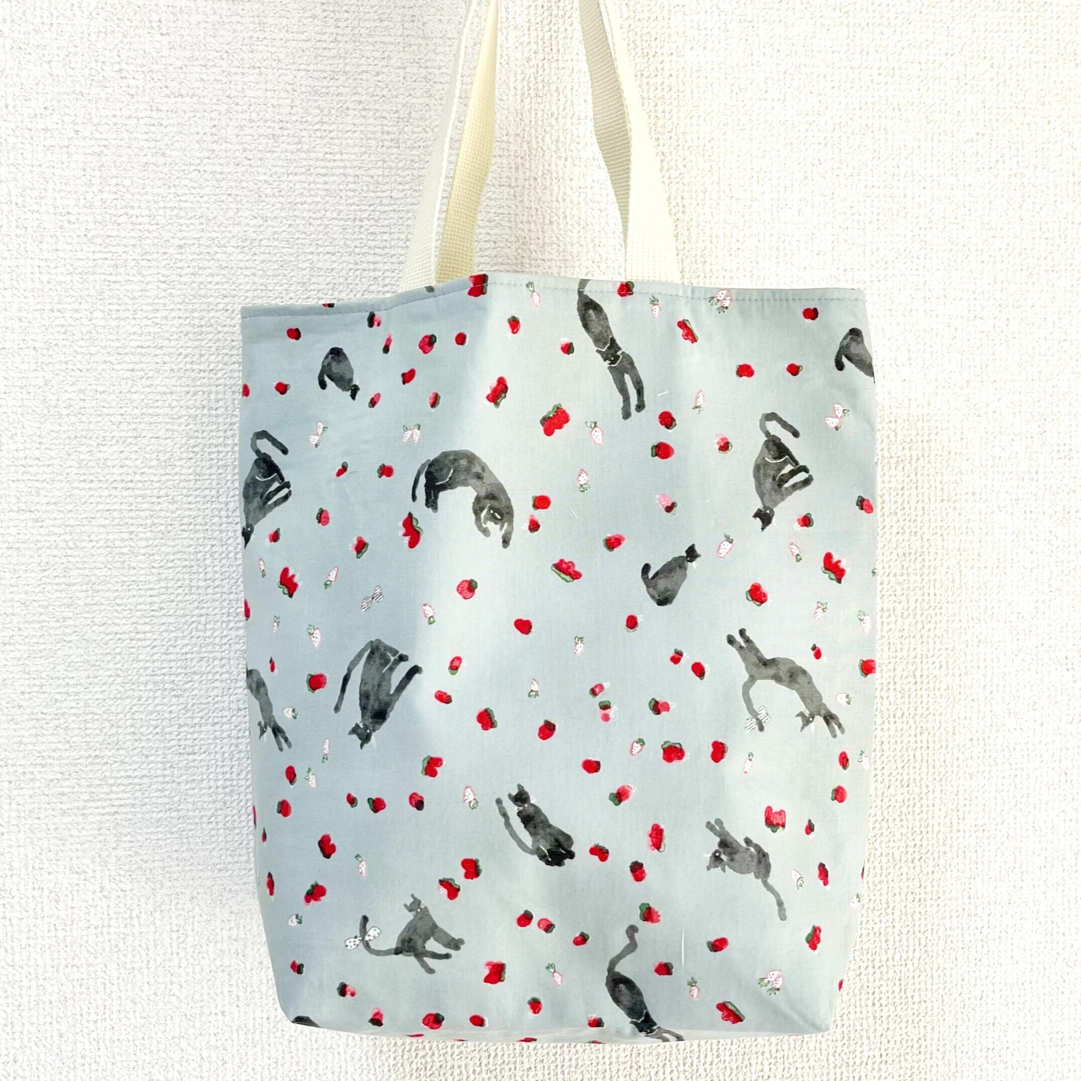 【7月予約分】ネコちゃん柄トートバッグ 薄緑 限定3個