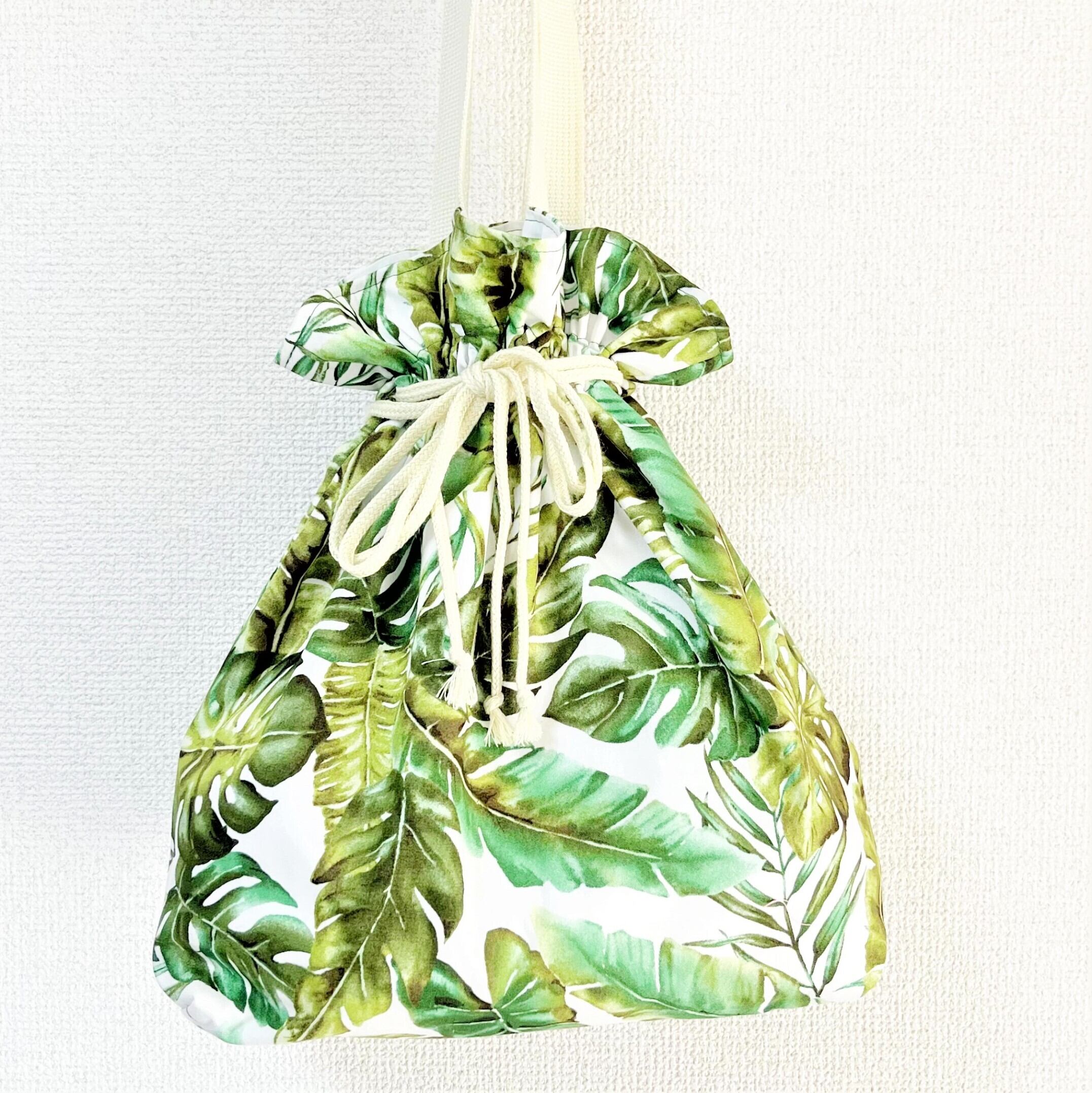 【7月予約分】ヤシ柄巾着バッグ ポーチ付き 限定5個
