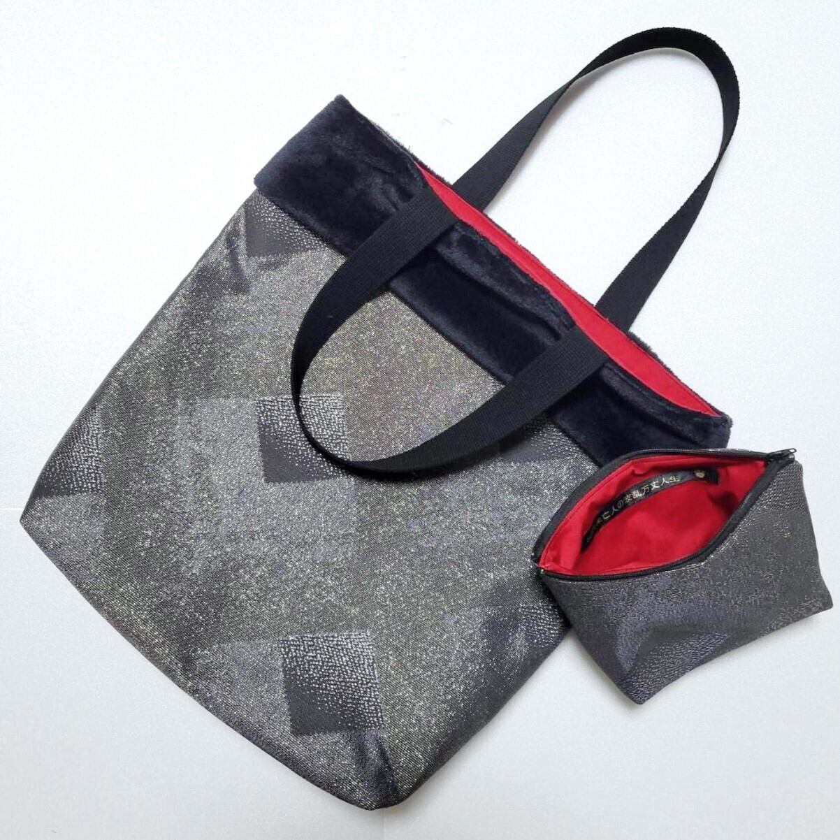 【2月下旬発送予約分】サンゲツ生地ダイヤ柄トート黒 ポーチ付 限定3個