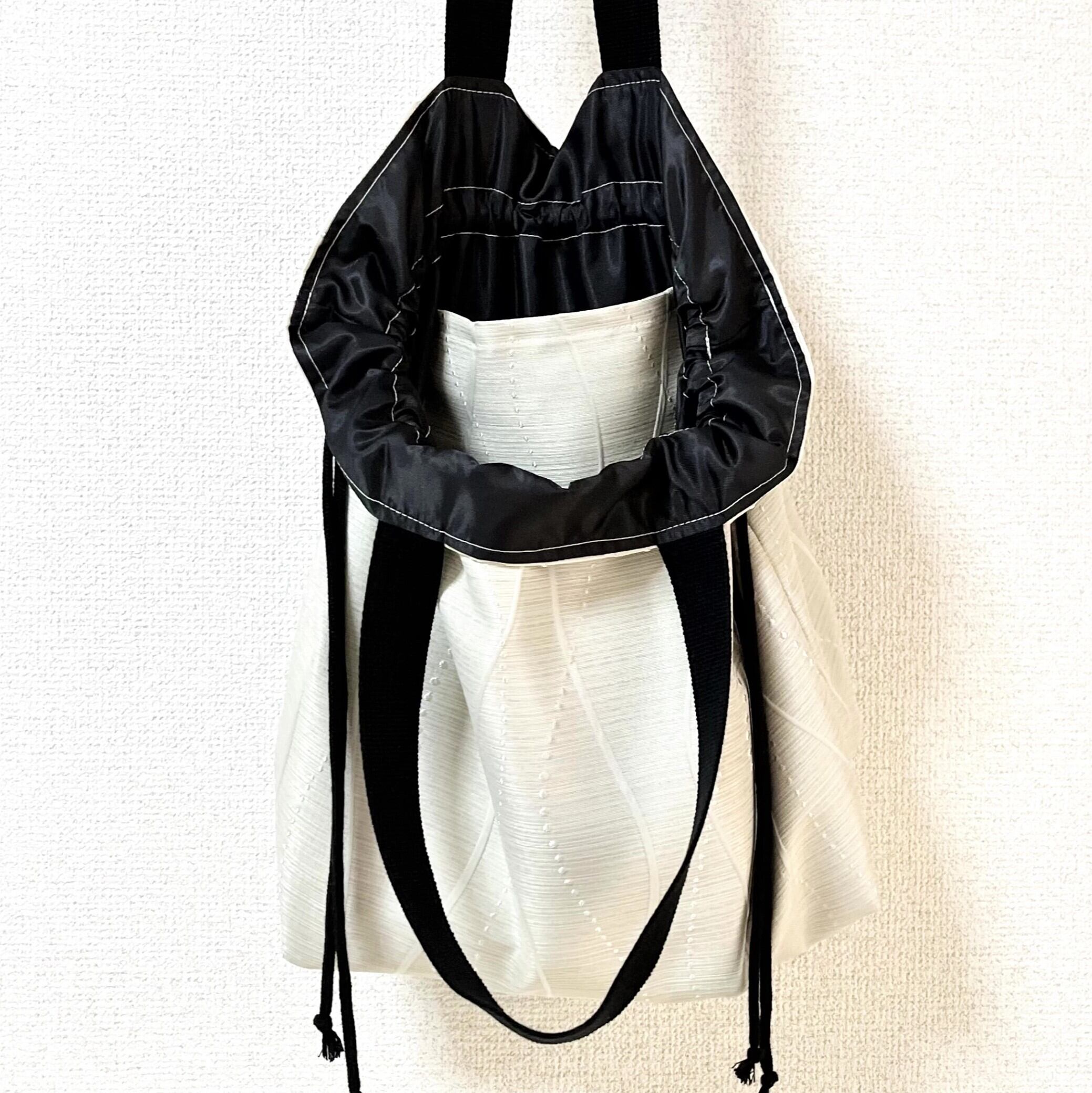 【7月中発送予約分】サンゲツカーテン生地 柄巾着バッグ 白