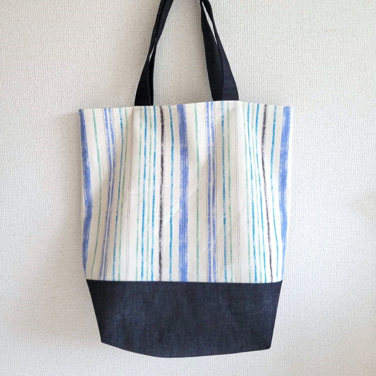 【10月発送予約分】デニム切り返しストライプトートバッグ 限定2個