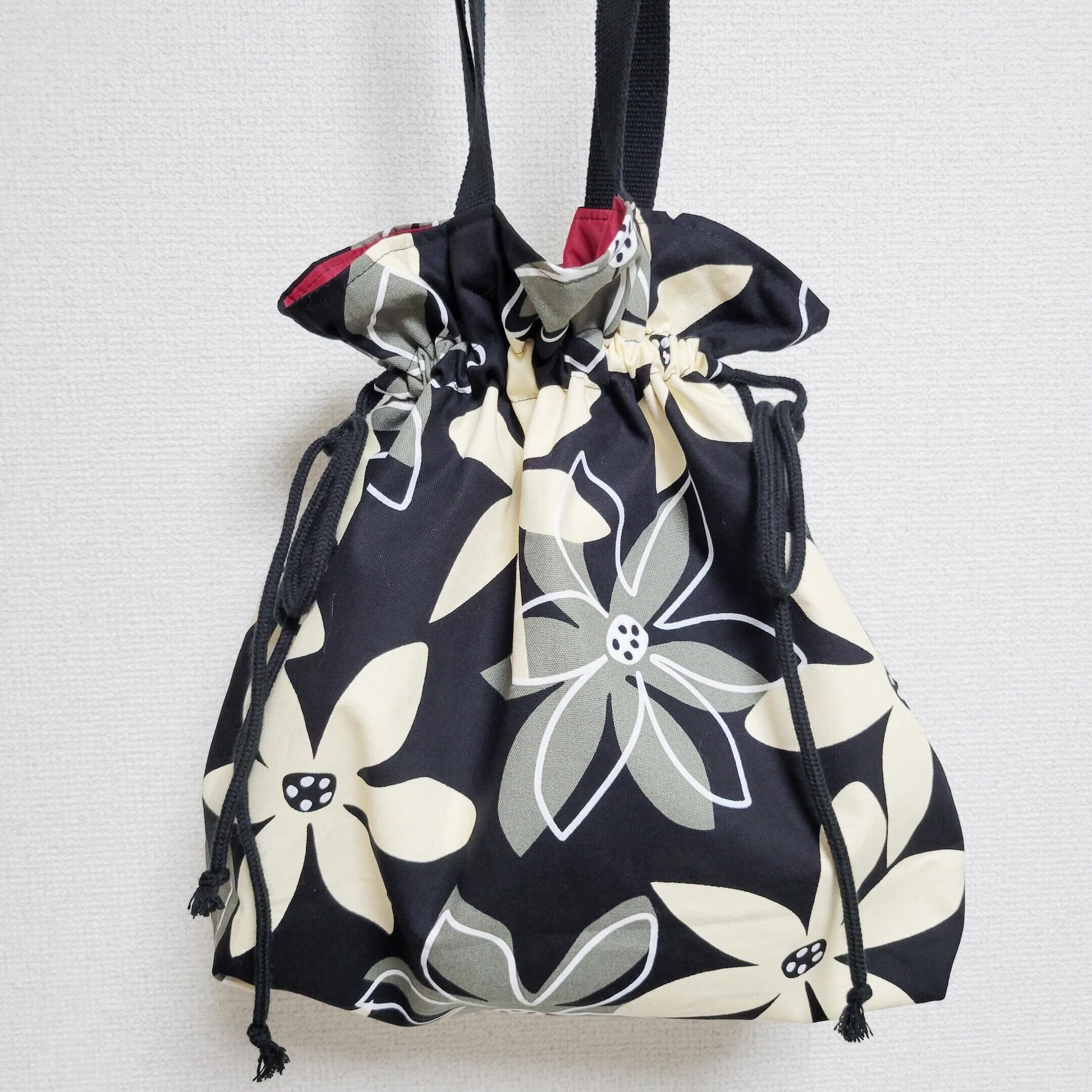 【11月発送予約分】花柄巾着バッグ 黒 限定5個