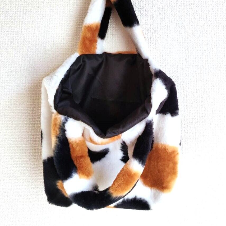 【1月中旬~1月下旬発送予約分】三毛猫柄フェイクファーバッグ